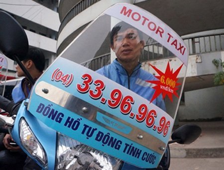 Tại Hà Nội vừa xuất hiện hàng loạt xe ôm hoạt động như taxi chuyên nghiệp. Xe máy của họ được trang bị đồng hồ tính cước, số điện thoại, bảng niêm yết giá cụ thể.