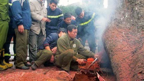 Gốc cây xà cừ tự nhiên phì khói lửa ở Hà Nội