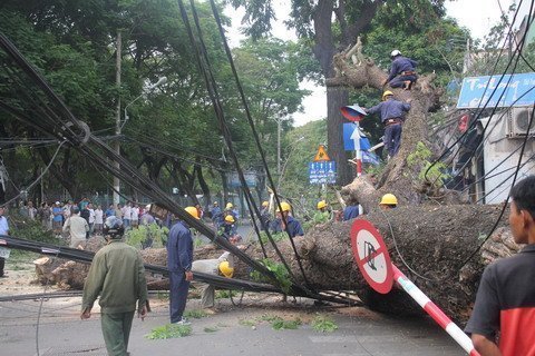 Lực lượng chức năng đã kịp thời có mặt điều tiết giao thông. Công ty công viên cây xanh đã điều động hàng chục nhân viên cùng phương tiện đến hiện trường khắc phục sự cố.