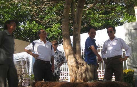 | Nhiều người chơi cây cảnh chuyên nghiệp đến trầm trồ bên cây mai |