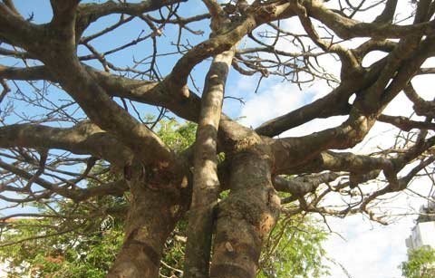 Cây mai già cỗi, phủ rong rêu từ gốc cây đến điểm tỏa bóng các nhánh cao khoảng hơn 2m. Hàng chục nhánh tua tủa tán rộng như cây bàng. Ở đầu mỗi nhánh nhỏ, rất nhiều nụ hoa bắt đầu nhú ra.