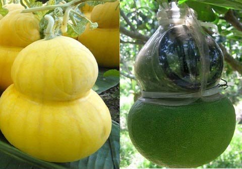 những quả dưa hấu bình thường thành những quả dưa hấu hồ lô màu vàng phục vụ Tết