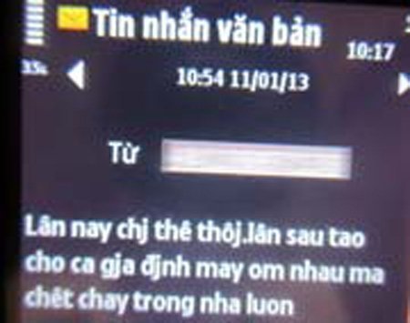 được một tin nhắn từ số điện thoại 016292505 hăm dọa sẽ "xử" luôn đứa con gái