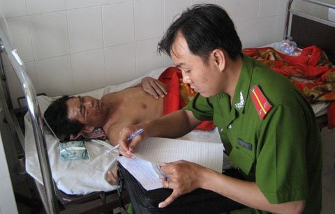 | Công an tỉnh Hậu Giang làm việc với công nhân bị nạn. |