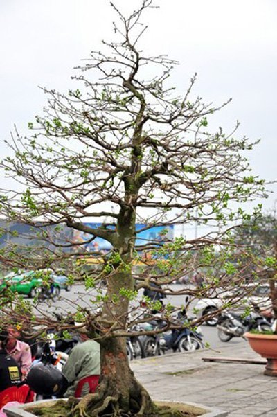 Đây là chậu mai của một chủ vườn tại Bình Định, hiện đang được bày bán tại chợ hoa TP.Đà Nẵng.