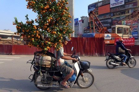 Người dân miền Bắc đang đi mua đào, quất trong tiết trời nắng nóng (Ảnh: