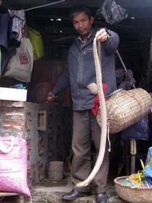 Ông nói, con rắn này ông mới bắt cách đây nửa tháng ở vùng núi Bảo Yên (Lào Cai) và trong chuồng vẫn còn hơn 20 con như thế đang... đợi Tết.