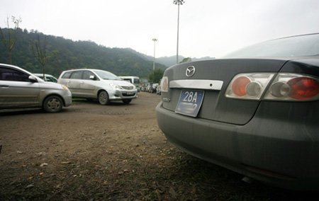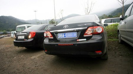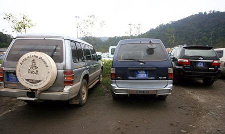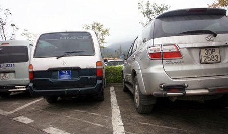 Đến những loại xe 16 chỗ đeo biển xanh có mặt tại bãi đỗ xe của lễ hội Yên Tử.