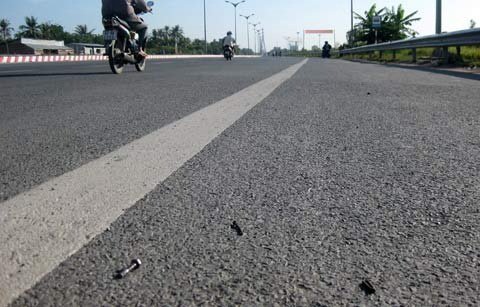 Quan sát một hồi, thấy khá nhiều xe máy dằn lên những ốc vít lăn lóc giữa đường.