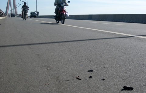 | Đôi nam nữ đi xe máy bị dính đinh khi đổ dốc cầu Cần Thơ |