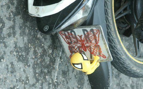 Chạy đến ngã tư Trần Bình Trọng - Nguyễn Du, tên cướp đâm vào một chiếc xe máy khác BKS 29X8 – 5762 chạy cùng chiều. Hậu quả, hai vợ chồng đi trên chiếc xe này bị thương và được đưa đi cấp cứu tại bệnh viện Việt Đức.