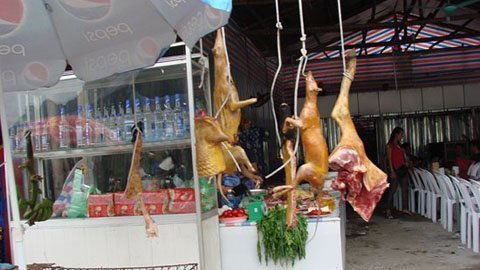 Thịt thú rừng giả lủng lẳng ở chùa Hương