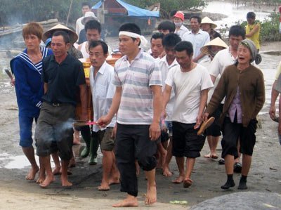 Không khí tang thương bao trùm cả xóm chài nghèo. Những người mẹ khóc con, người vợ khóc chồng, con khóc cha… .