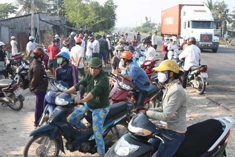 | Hiện trường vụ tai nạn sáng nay vẫn còn rất đông người dân hiếu kỳ theo dõi |