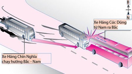khiến xe tải đông lạnh bị tống văng tới dập vào hông của xe khách thứ nhất, kẹp