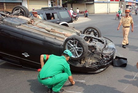 Vào thời điểm trên, xe ô tô 5 chỗ mang BKS: 61L - 4444 lưu thông theo hướng ngã tư Bình Phước về TP Thủ Dầu Một. Khi đến ngã tư Tân Lập đã mất lái đâm vào giải phân cách giữa đường. Theo đà, chiếc xe tiếp tục trờ tới, húc thẳng vào cột đèn chiếu sáng rồi lật “chổng vó” giữa đường.