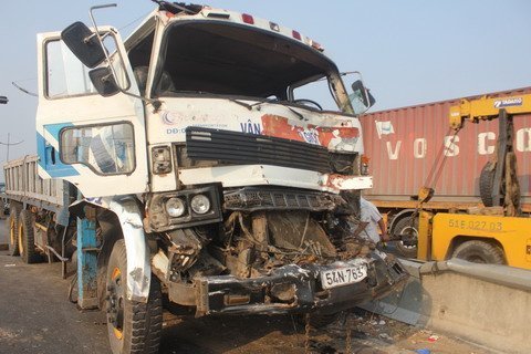 Đến ngã tư Trần Đại Nghĩa, dù phía trước có đèn đỏ nhưng xe tải vẫn không giảm tốc mà húc thẳng vào đuôi xe tải 54V – 6759 do tài xế Nguyễn Văn Thành (63 tuổi, ngụ Q. 6) điều khiển đang dừng chờ đèn tín hiệu giao thông.