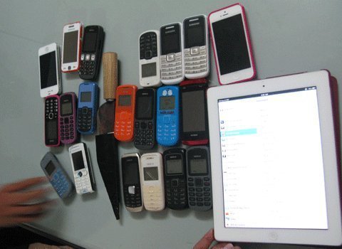 Cơ quan công an đã thu được rất nhiều điện thoại, 1 iPad là số tài sản mà bọn chúng lấy được từ những gia đình sơ hở.