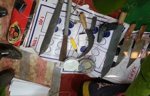 Ngoài số tiền, bảng vị thu tại chỗ, cảnh sát còn thu được khẩu súng, 5 viên đạn, cùng nhiều dao, đao…