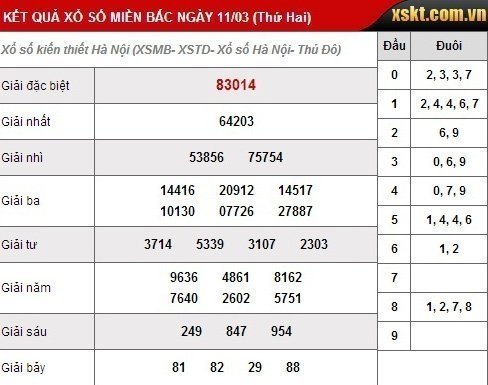 Trùng hợp, tối cùng ngày (11/3), giải đặc biệt kết quả xổ số miền Bắc có dãy số cuối cùng là 14.
