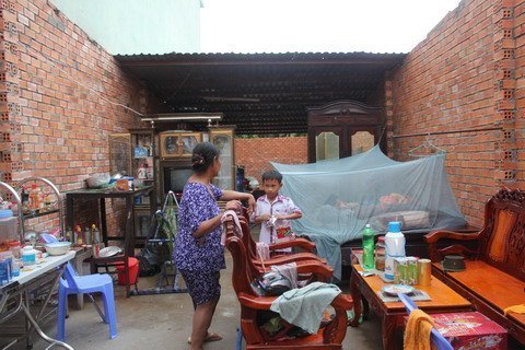 Bà Đắp thuật lại, trong lúc đang nằm nghỉ trong nhà bất ngờ nghe tiếng động mạnh rồi không bao lâu toàn bộ căn nhà trống huơ trống hoác. Bà Đắp đã phải sang lánh nạn ở nhà hàng xóm.