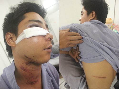 Bác sỹ điều trị cho anh Hoàng cho hay: anh Hoàng nhập viện trong tình trạng bị nhiều vết thương ở vùng mặt, cổ và lưng. Đặc biệt, phía gò má bên trái bị gãy xương, mất máu rất nhiều.