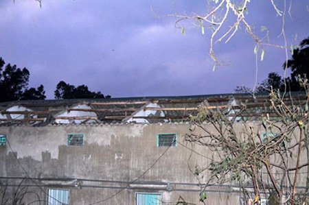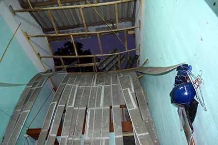 | Dãy nhà 8 phòng trọ của bà Nguyễn Thị Thu Hằng, số nhà 55, tổ 5, khu 65, phường Cao Xanh hất tung hết mái |