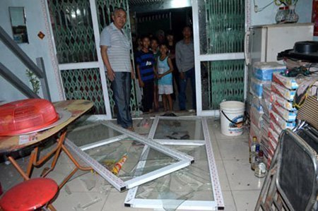 | Cửa kính, mái tôn trong nhà ông Trần Đình Định, tổ 5, khu 65, phường Cao Xanh bị