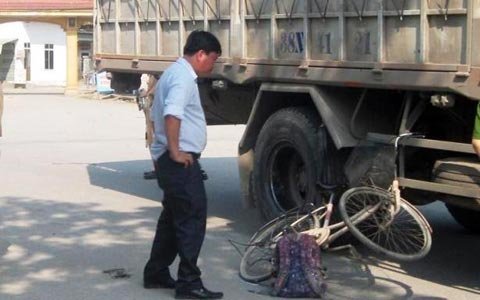 Hậu quả, chiếc xe đạp bị ô tô kéo lê hơn 10m mới dừng lại khiến em học sinh tử vong tại chỗ.