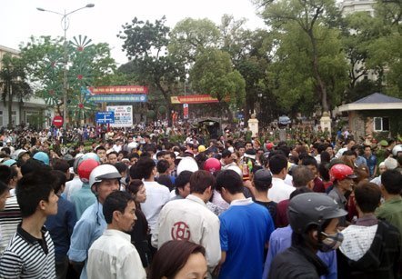 Ngay chiều hôm đó, xác nạn nhân được đưa lên chiếc xe lôi và được mọi người kéo đi đòi cơ quan điều tra phải làm vụ việc khách quan.