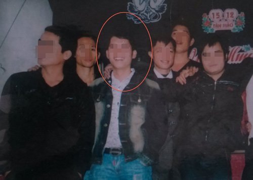 | Hiệp (khoanh đỏ) trong một lần đi ăn cưới cùng bạn bè. |