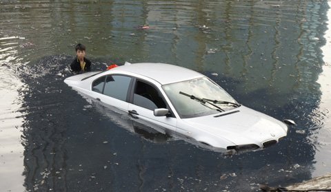 Chiếc xe hơi đắt tiền vừa được chủ nhân đưa vào gara bảo dưỡng, nhân viên gara lái xe để kiểm tra đã không làm chủ chân ga, chiếc xe mất lái lao thẳng xuống sông Tô Lịch.