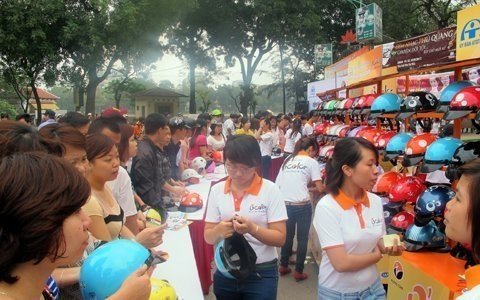 Sáng 23/3, rất nhiều người dân Hà Nội đã đổ xô đến các địa điểm đổi mũ bảo hiểm chính hãng có trợ giá để đổi mũ rởm lấy mũ... xịn.