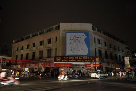 | Quảng trường Cách mạng Tháng Tám trong Giờ trái đất 2013 |
