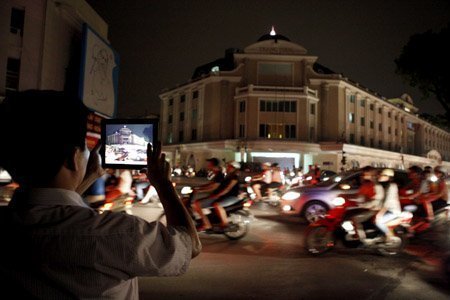 | Nhiều người thích thú ghi lại cảnh Hà Nội trong Giờ trái đất |