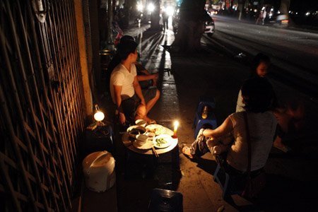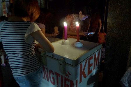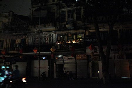 | Nhóm bạn trẻ thắp nến ngắm phố phường trên tầng 2 phố Hàng Khay |