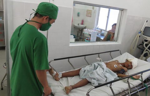 Cũng theo các BS, cháu Nghiêm đang trong tình trạng hôn mê, thi thoảng nói sảng gọi mẹ trong đau đớn.