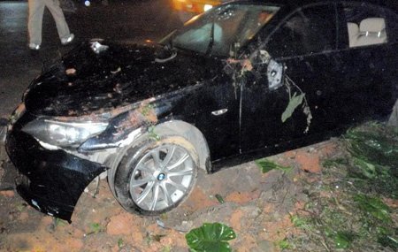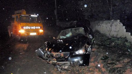 | Chiếc BMW Series 5 xấu số này tử nạn tại đèo Khế, Chiêm Hóa, Tuyên Quang vào đêm mùng 5 Tết. |