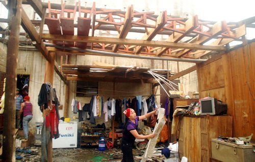 “Đang chìm trong giấc ngủ thì thấy tiếng mưa rơi lạch tạch, một lát sau tiếng mưa rơi ngày càng to, rồi mái nhà thủng lỗ, đồ đạc bị mưa làm ướt, cả nhà tôi chui vào gầm giường để tránh không bị mưa đá rơi vào đầu” - một người dân kể lại.