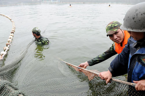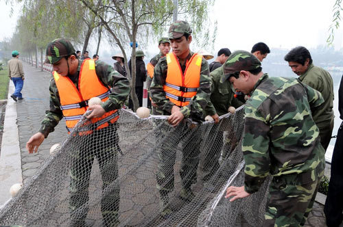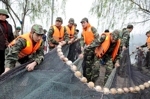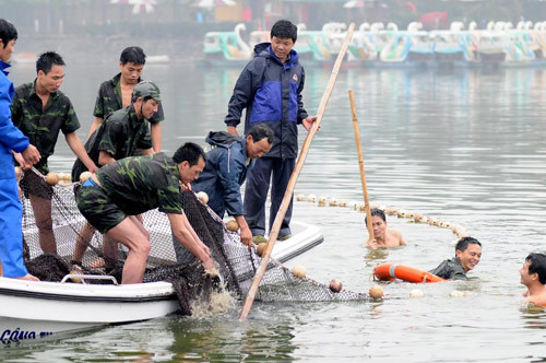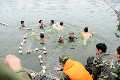 Lực lượng bơi lội và tham gia kéo lưới dưới nước chính gồm 20 chiến sĩ đặc công. Đội lai dắt rùa thuộc tập đoàn KAT nắm nhiệm vụ điều khiển thuyền, hỗ trợ vận chuyển kéo lưới, rải lưới.