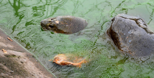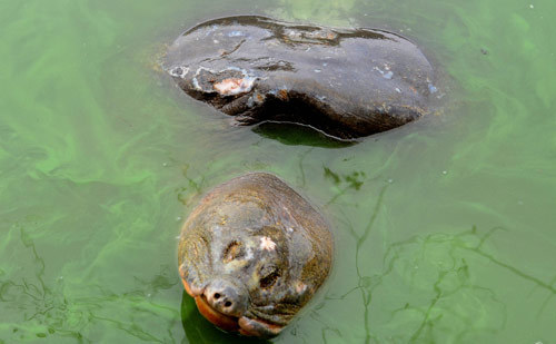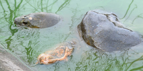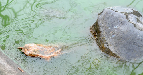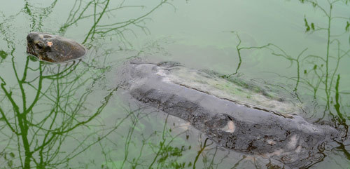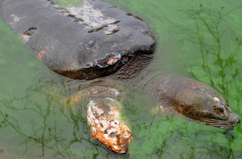 Cụ rùa nổi từ 7h sáng đến 11h trưa mới lặn.