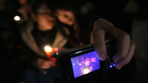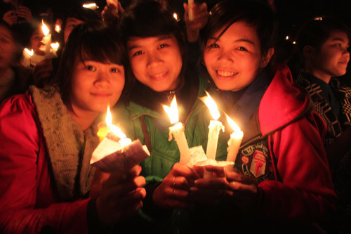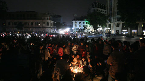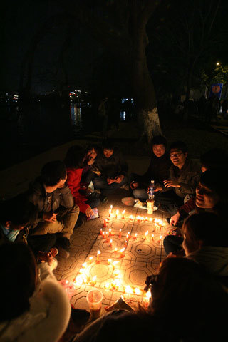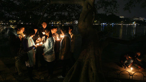 Đông đảo thanh thiếu niên Hà Nội thắp nến tại những địa điểm thực hiện tắt điện để hưởng ứng, kêu gọi trách nhiệm của loài người với môi trường, với hiện tượng biến đổi khí hậu.