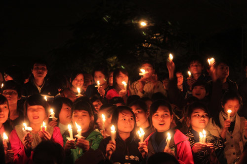 Bạn trẻ Huế thắp nến chung tay bảo vệ môi trường. |
