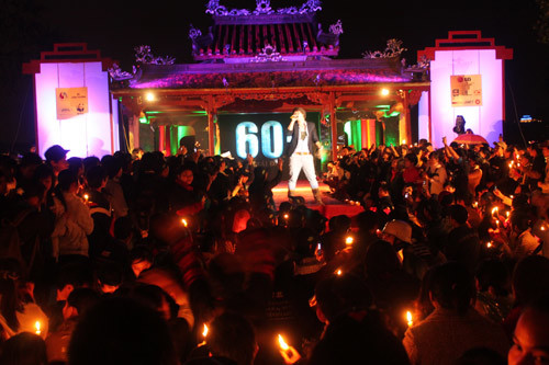 Hàng nghìn bạn trẻ và người dân Huế đã hội tụ về đây để cùng chia sẻ và hưởng ứng Giờ trái đất với thông điệp Tắt điện 60 phút, hành động 365 ngày vì biến đổi khí hậu.
