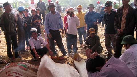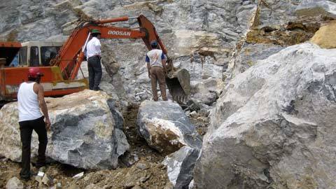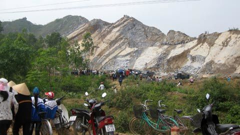 Chùm ảnh do PV VietNamNet ghi lại từ hiện trường chiều 1/4, tại núi đá Lèn Cờ, xóm Hợp Thành, xã Nam Thành (huyện Yên Thành, Nghệ An).