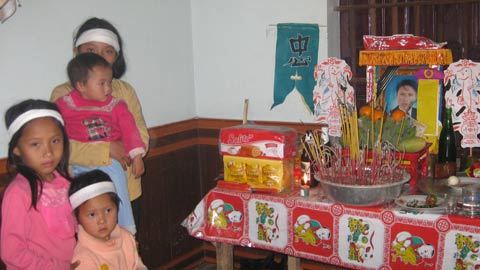 Giữa trưa, tiết trời oi bức. Trong căn nhà hướng mặt ra cánh đồng, cả sân nhà anh Mạnh kín màu trắng khăn tang. Khói hương bốc lên nghi ngút...