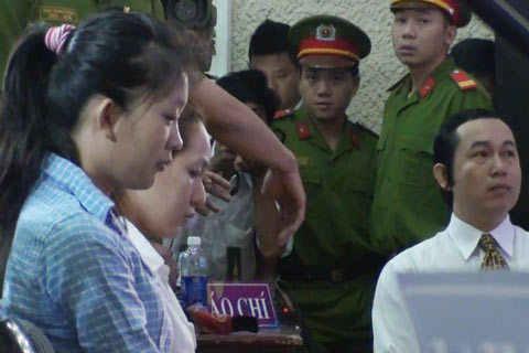 Đông Phương và Thiên Lý nước mắt lưng tròng tại phiên xử. (Ảnh: Quốc Đoan)
