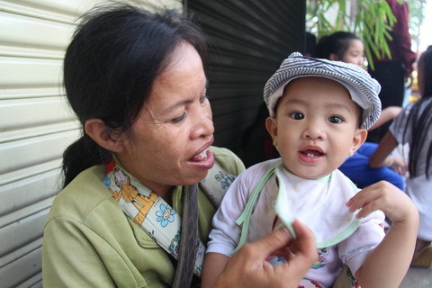 Đứa bé nhìn tôi toét miệng cười. Một tay đưa ra dường như muốn vẫy tôi lại gần. Nhưng khi vừa nhón chân, đứa bé vội rúc đầu vào người mẹ ...