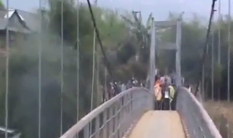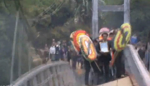 Clip: Giây phút cầu treo đổ sập khi đám ma đi qua