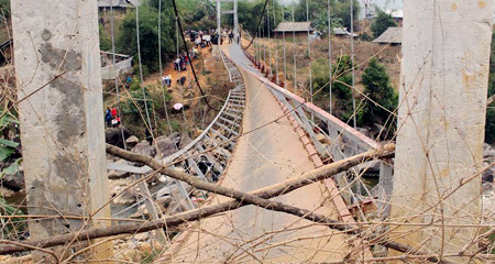 Sáng 24/2, khi đoàn đám tang đi qua cầu treo ở bản Chu Va 6, xã Sơn Bình (huyện Tam Đường - Lai Châu) thì cây cầu bất ngờ bị sập. Đã có 8 người tử vong và hơn 30 người bị thương nghiêm trọng.